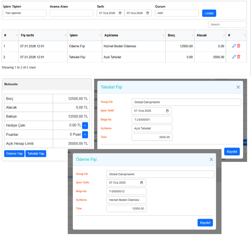 Ödeme, tahsilat gibi ön muhasebe işlemleri,